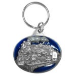 Railroad key chain has a steam engine on the front with blue and grey enamel and on the back the words, “The railroad is the foundation of modern civilization”. Since these key rings are fully metal they stand up the rigorous day to day use and will keep looking great for years to come. Key chain is 1-3/4″ x 1-1/4″.